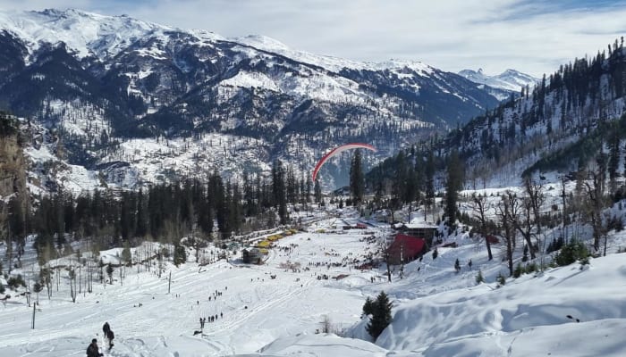 The adventure hub of Manali offering paragliding, skiing, and zorbing.